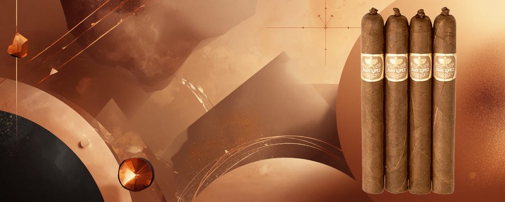 Juan Lopez Maximos This new Dominican-made revival of a classic brand features an Ecuadorian Corojo wrapper over an Ecuadorian Habano binder. It shows a medium body with a blend that includes Piloto Cubano and HVA filler tobaccos. The 6 x 48 vitola comes in boxes of 11 and tries to capture an old-world Cuban style.